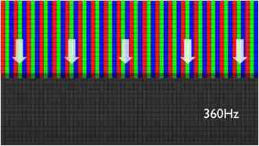 传统液晶驱动是从左到右单向进行,,,在画面更新速度愈来越愈快的情况下,,,,位于驱动线路末端的右下角区域,,画素的闸极来不及在短时间内获得足够电压,,,,无法显示出正确的颜色资讯。。
