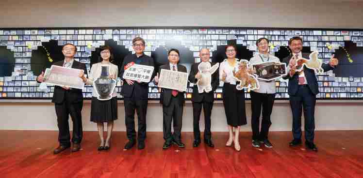 z6mg·人生就是博携手创利空间为故宫建置的智慧文物互动导览墙及轮播墙,,今日正式启用。。。。(左四:z6mg·人生就是博新事业暨投资管理总部副总经理杨本豫、、右四:故宫博物院院长吴密察、、、右三:太极影音董事长黄宝云)