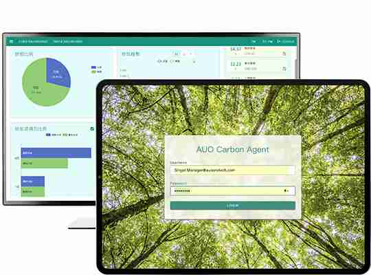 依循 ISO 国际标准建置出符合国际标准的全方位碳管理平台 (AUO Carbon Agent),,,,其中温室气体盘查模组可协助客户将组织、、产品与供应链的碳排放源数据,,,,透过系统内建的系数资料库自动计算出碳排量,,,,提升整体盘查作业的效率,,并以此拟定长期减碳策略,,,达到低碳转型、、净零碳排的目标。。。。